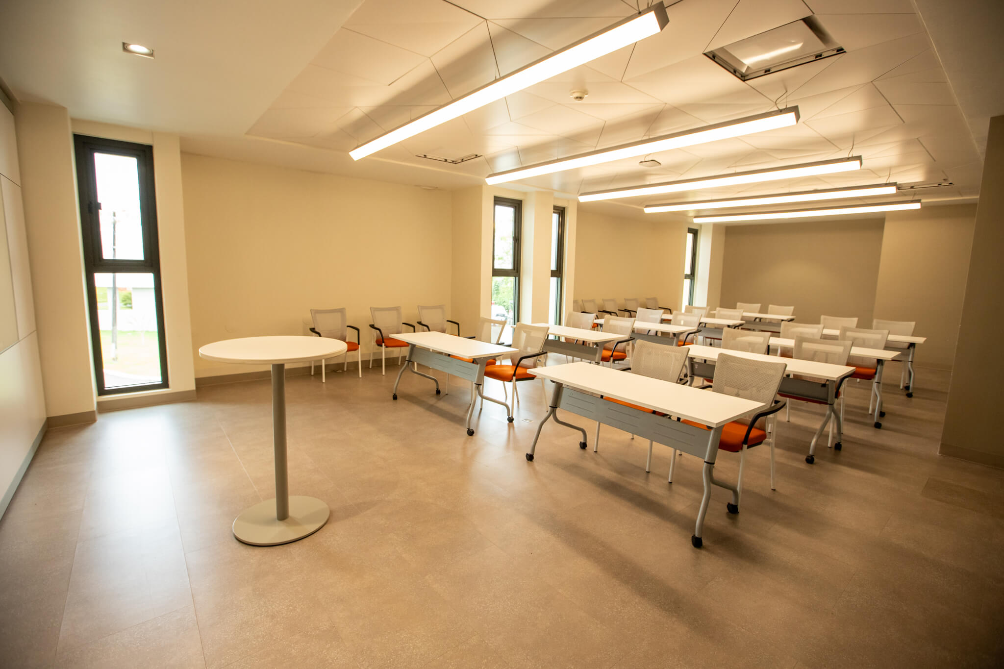 Innovation y Forward Centers te ofrecen salones multiusos en el primer y segundo nivel, equipados con tecnología multimedia y sistemas de teleconferencia. Son espacios versátiles, perfectos para conferencias, talleres interactivos, reuniones estratégicas o sesiones de capacitación de alto impacto.