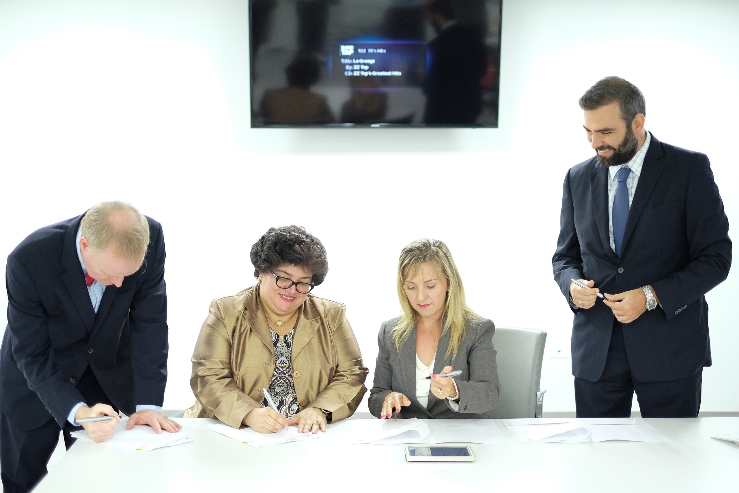- Desde la izquierda , Kenira Thompson presidenta de Ponce Research Institute , Lucy Crespo, Principal Oficial del FCTI , el Dr. David Lenihan , Presidente de la universidad , y Kosmas Kretsos del FCTI .(photo by: Jose R. Madera)