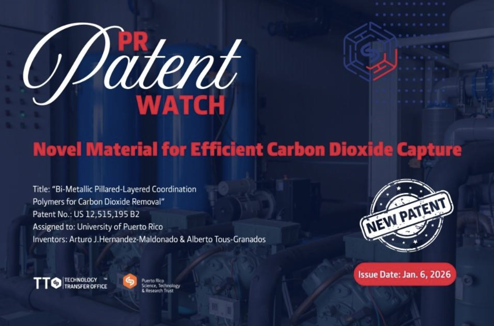 A newly issued U.S. Patent from the University of Puerto Rico at Mayagüez introduces a novel metal–organic framework (MOF) designed for high-efficiency carbon dioxide capture. This innovation highlights Puerto Rico’s growing role in translating academic research into real-world sustainability solutions.